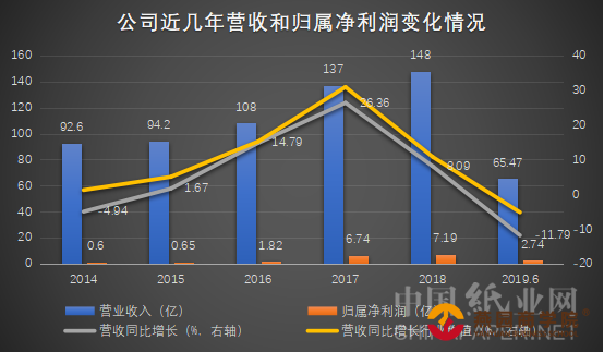 近日,华泰股份发布了2019年上半年年报,据年报显示公司上半年实现营业收入65.47亿,同比下降11.79%,实现利润总额3.44亿,同比下降30.86%,实现归属上市公司股东的净利润2.74亿,同比下降26.34%。